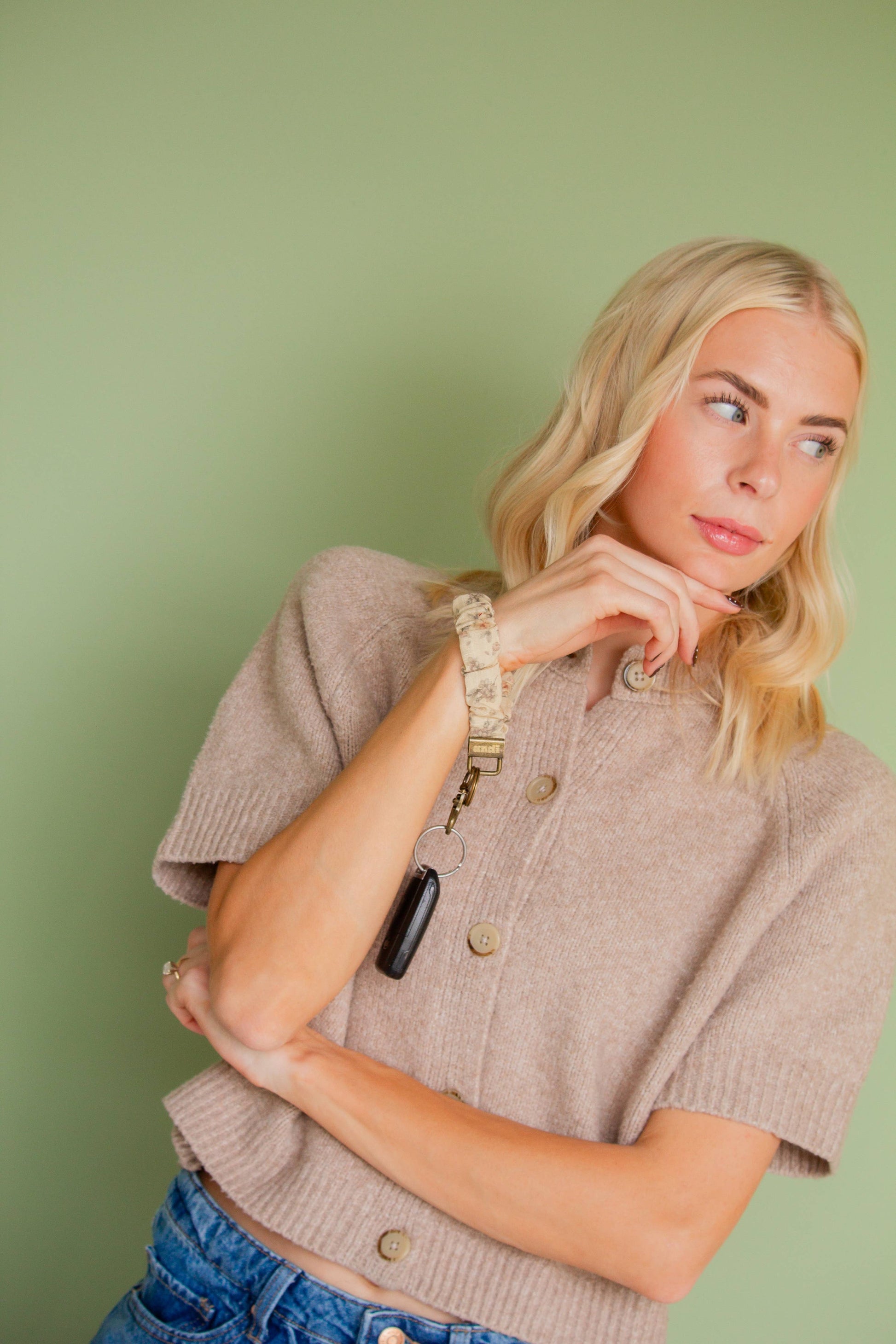 Andi keychains are the cutest you'll find! This keychain is the prettiest neutral floral in a nice, slightly textured lighter weight fabric. This one will be perfect for back to school and the fall season. You can't go wrong with floral--it'll look cute with all your outfits! Get this to hold all your necessities and keep your pockets and hands free while adding a cute and stylish flair.