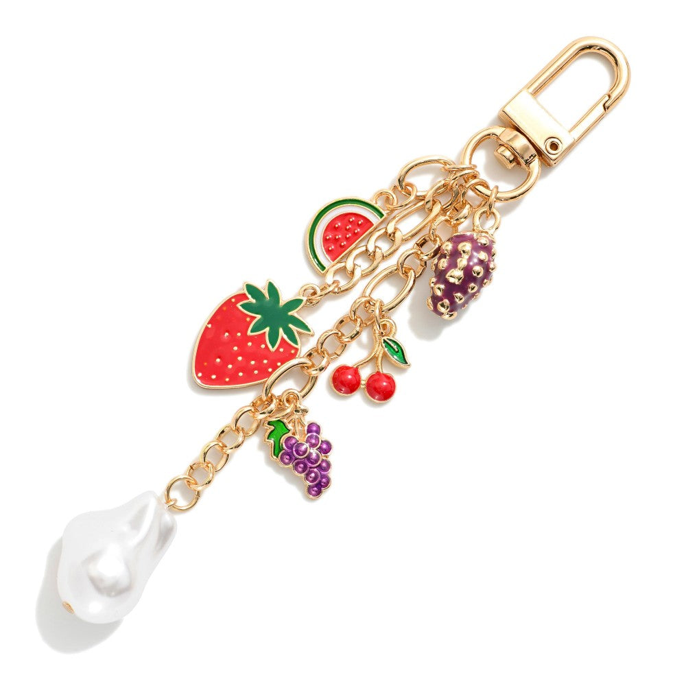 Chain Link Bag Charm Featuring Fruit & Pearl Charms