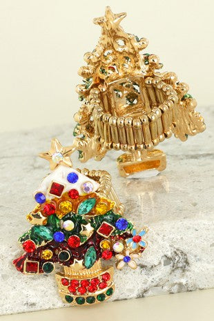 Christmas Tree Rhinestone Jeweled Cocktail Ring