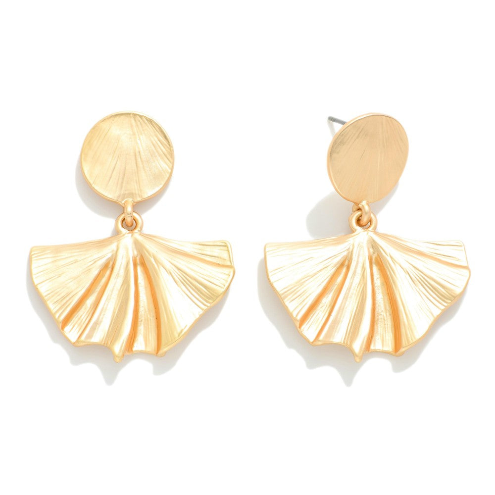 Crafted from high-quality metal, these stylish fan-shaped leaf drop earrings are approximately 1.25 inches in length, making them the perfect addition to any jewelry collection.