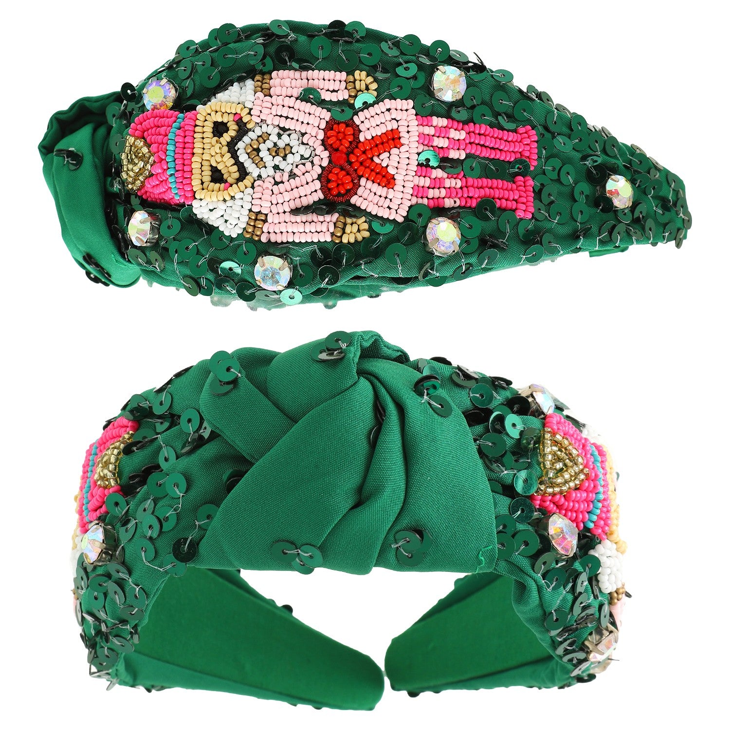 Nutcracker Christmas Jeweled Top Knotted Headband - Green